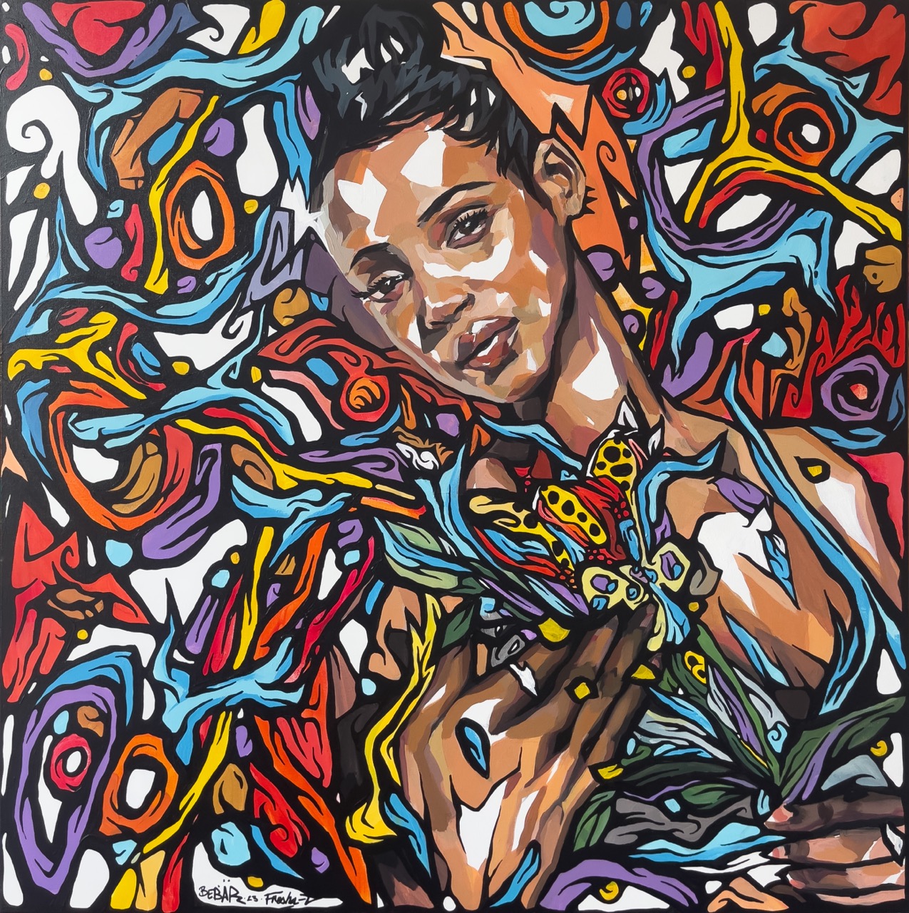 Spraypaint, acrylic and ink