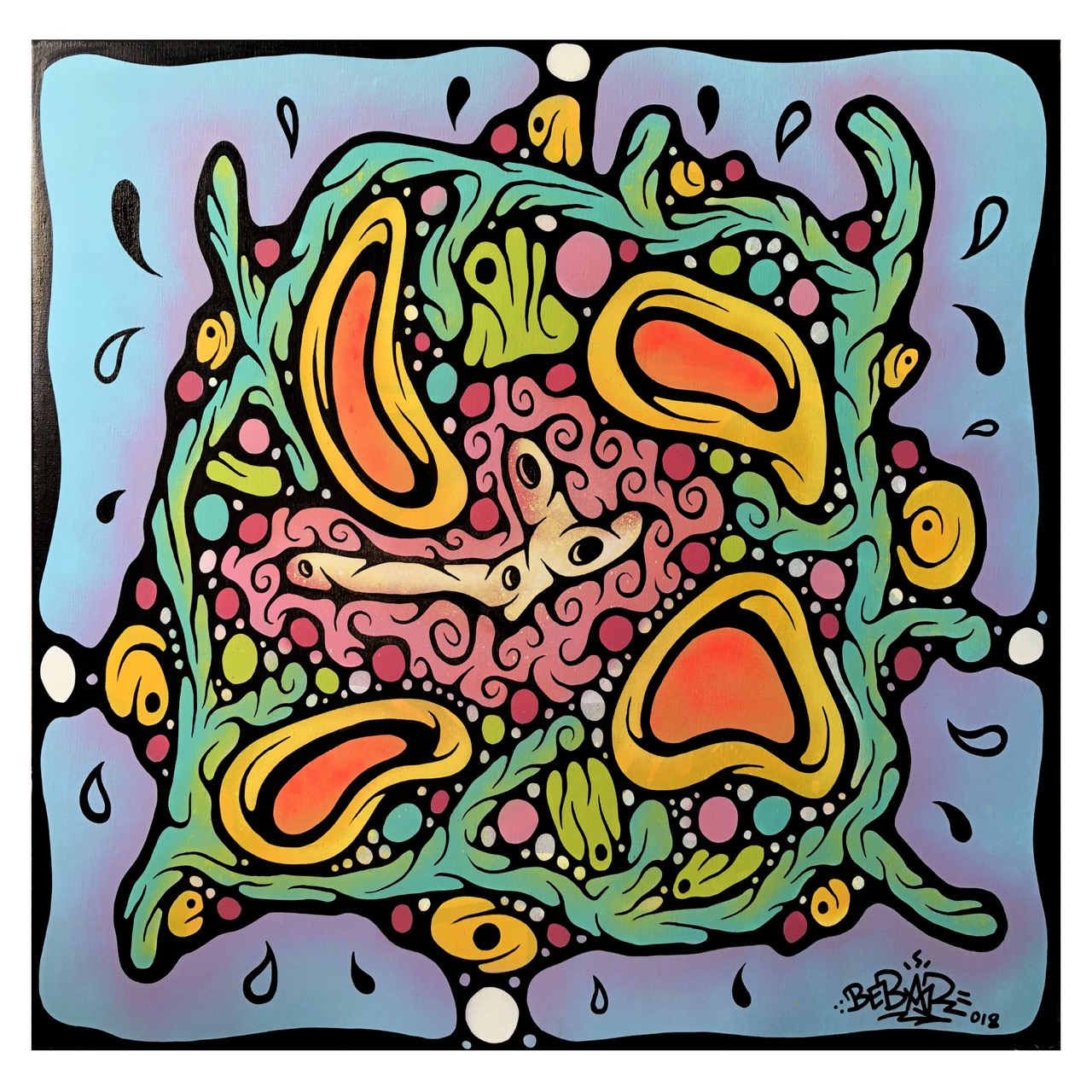Spraypaint, acrylic and ink